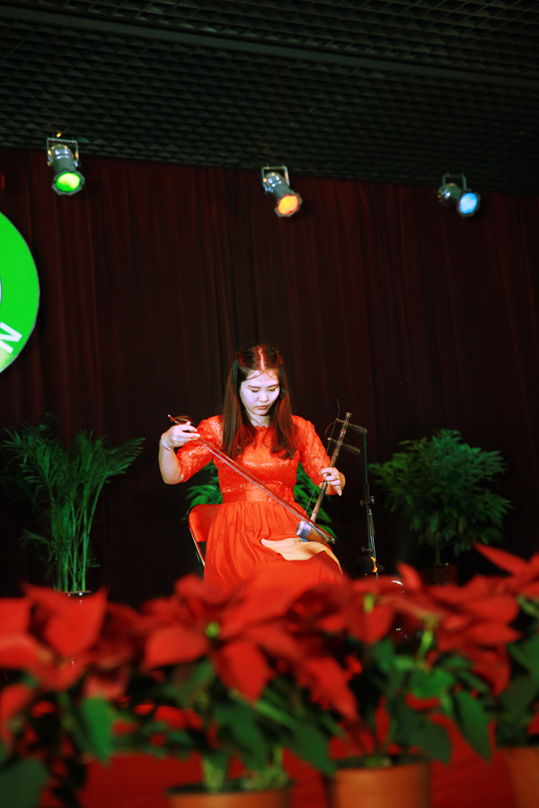 演出在女聲獨唱《紅紅的日子》中拉開帷幕,紅紅的日子,美滿的寫照,真實的反映出嘉晨人對集團(tuán)公司現(xiàn)狀和對集團(tuán)未來的美好向往。女聲獨唱《幸福山歌》描繪了嘉晨員工幸福、美滿的生活畫卷;歌曲《紅梅贊》歌曲樸實優(yōu)美,深情而又樂觀,告訴嘉晨人不能忘記老一輩革命先烈們,為了中華民族的崛起犧牲自我的革命主義精神和對憧憬中國美好未來的堅定信念;男聲獨唱《牡丹之歌》歌曲充滿濃郁的民族風(fēng)格和新鮮的時代氣息;男聲獨唱《草原升起不落的太陽》描繪出嘉晨人熱愛家鄉(xiāng)、贊美生活、歌頌黨和領(lǐng)袖的心聲;大合唱《嘉晨之歌》展現(xiàn)了嘉晨人以強(qiáng)烈的主人翁精神,用熱情、素質(zhì)、實際行動支持企業(yè)的決心和奉獻(xiàn)自我的楷模精神;鐵嶺民間藝術(shù)團(tuán)的二人傳表演:詼諧幽默,富有生活氣息,讓在場所有人無不開懷大笑。京胡獨奏《梨花頌》,電子琴獨奏《茉莉花》,歌曲《為了誰》、《在此刻》、《我們不一樣》、《老家拉拉屯》、《把酒倒?jié)M》、《我們不一樣》、《好男兒》,等節(jié)目輪番上演,晚會最后在集團(tuán)孫總一首《呼倫貝爾大草原》的優(yōu)美旋律中落下帷幕。整臺晚會精彩紛呈,內(nèi)容豐富,掌聲不斷,為嘉晨集團(tuán)干部職工送上了一道豐富多彩的文化大餐。圖為晚會現(xiàn)場。