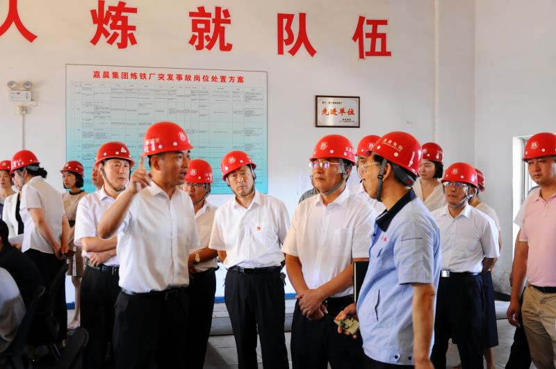2018年7月20日,營口市老邊區(qū)人大常委會主任周立東,副主任孫朝林、呂光波、張?zhí)鞎煟眳^(qū)長趙洪生、張靜賢,及區(qū)政府辦、安監(jiān)局的主要負(fù)責(zé)同志在嘉晨集團總裁趙松一的陪同下,來到營鋼公司煉鐵廠對生產(chǎn)安全情況進行視察調(diào)研。