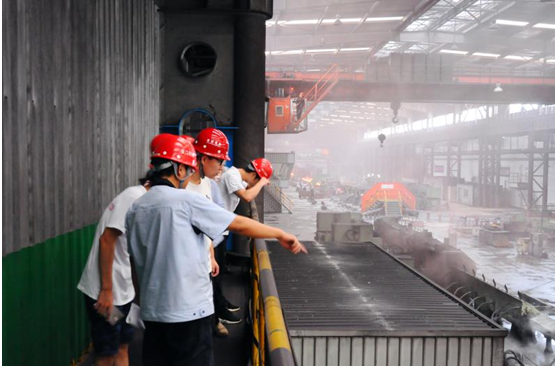 同學(xué)們?cè)谝贿厖⒂^,一邊通過師傅現(xiàn)場(chǎng)講解,才真正了解到軋鋼的工藝流程并且知道了鋼板到底是怎么形成的。赤紅而超高溫的鋼板在生產(chǎn)線上快速運(yùn)行,最后被切割成一段一段的,經(jīng)冷水冷卻后,這些基本板材,有的進(jìn)入軋機(jī)進(jìn)行軋制后做成鋼材卷板。當(dāng)天,在高溫又環(huán)境惡劣的再熱軋現(xiàn)場(chǎng)中,令人有種“蒸桑拿”的錯(cuò)覺。雖然大家早已汗流浹背,但即便如此,同學(xué)們?nèi)允潜3志?,認(rèn)真聆聽?zhēng)煾档闹v解。當(dāng)大學(xué)生們親眼目睹一道道工序的順利進(jìn)行,直到鋼材一批批的成型,不由發(fā)出陣陣掌聲,既為工人師傅的精湛工藝和吃苦精神所感染,更深刻地體會(huì)到制造企業(yè)為社會(huì)主義生產(chǎn)力作出的貢獻(xiàn)。