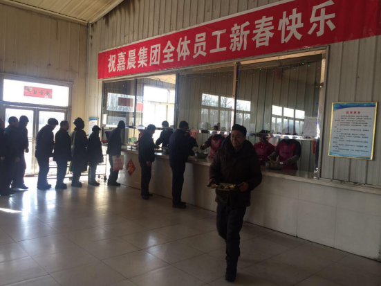 當(dāng)璀璨的煙花在嘉晨上空朵朵綻放之時(shí),公司領(lǐng)導(dǎo)班子一行又來到食堂看望了仍在工作的廚師、服務(wù)員及就餐職工。賈總向大家拜年!并感謝食堂員工為保證集團(tuán)燃化職工度過春節(jié)而精心準(zhǔn)備的可口、精美菜肴。廚師長(zhǎng)代表全體廚師及服務(wù)人員,感謝公司領(lǐng)導(dǎo)的關(guān)懷,并表示,要發(fā)揚(yáng)不怕苦、不怕累的嘉晨精神,為了全體職工能過好春節(jié)而努力工作,食堂員工耿艷為了給不能回家過年的職工營造家的感覺,爬上高梯,精心打扮食堂,讓回不了家的職工感受到家的溫暖、嘉晨的愛意!