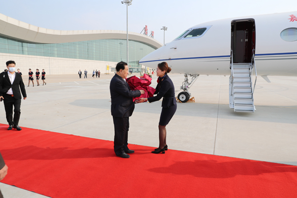 4月30日7時(shí)30分,嘉晨集團(tuán)董事長(zhǎng)孫壽寬先生及隨行人員乘車抵達(dá)營(yíng)口蘭旗機(jī)場(chǎng),開啟了嘉晨集團(tuán)首架公務(wù)機(jī)(灣流650型)首航之旅。在完成安檢流程后,孫壽寬董事長(zhǎng)一行緩步走向停機(jī)坪,機(jī)組人員向董事長(zhǎng)及隨行人員親切握手,敬獻(xiàn)鮮花并合影留念。8時(shí)飛機(jī)準(zhǔn)時(shí)起飛。此次飛行將在一天內(nèi)抵達(dá)中國(guó)東部及南部多座城市,以公務(wù)機(jī)的靈活便捷優(yōu)勢(shì)為嘉晨集團(tuán)業(yè)務(wù)版圖擴(kuò)展提供強(qiáng)大動(dòng)力。