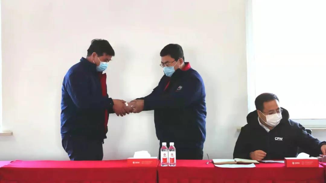 張總為發(fā)電廠頒發(fā)錦旗和榮譽證書